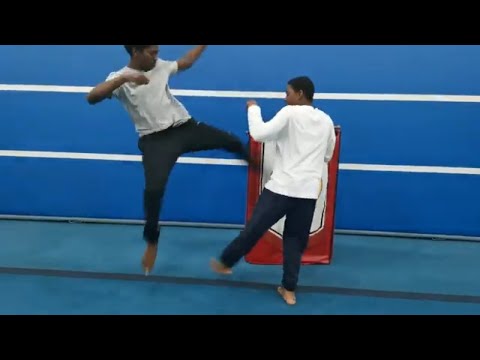 Kung Fu students practicing jump kick. They show you how to use it in a fighting situation, fantastic technique to have in your locker. Do you used this technique, how would you used it..? don't forget to like share and comment and of course subscrib if your new around here, enjoy..Sifu